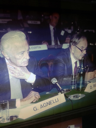 "This one shows David Rockefeller and Gianni Agnelli sitting side by side addressing the conference. I remember similar times at the Chase International Advisory Committee meetings (Jim Phelan and I acting as 'staff'). At the social events in the evening, we could hardly keep our wives from running off with Agnelli. David was pretty smooth as well. Chase memories," Riegelhaupt wrote us from Venice.