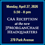 JPMC will host a free reception for dues-paying CAA members at its new headquarters building (270 Park Avenue) on Monday, April 27, 5:30-8 pm.